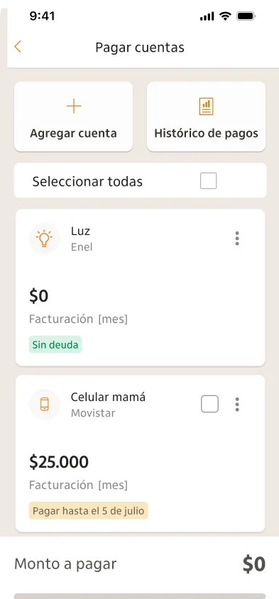 - Cuentas de Servicios: Puedes pagar tus cuentas de servicios públicos como electricidad, agua, gas, teléfono, internet y otros servicios desde la aplicación. Simplemente ingresa los detalles de la boleta y autoriza el pago.