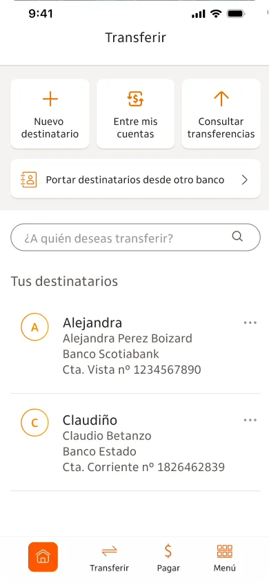 - Transferencias y Pagos de Terceros: Además de las cuentas y tarjetas propias, puedes realizar transferencias y pagos a terceros, lo que facilita la transferencia de dinero a familiares, amigos o cualquier destinatario necesario.