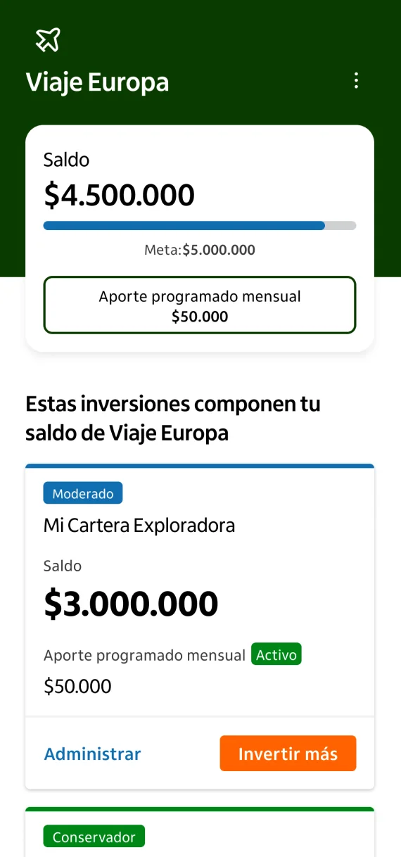 No necesitas una gran cantidad de dinero para comenzar a invertir por objetivos. En Itaú puedes empezar con montos bajos y accesibles, lo que te permite dar los primeros pasos hacia tus metas financieras sin comprometer tu presupuesto mensual. Lo importante es comenzar con constancia. Desde la app, puedes ajustar el monto mensual y aumentarlo cuando te sientas más cómodo.