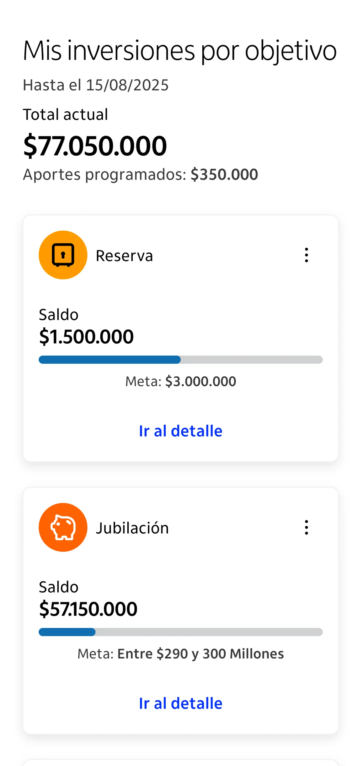 Sí, puedes crear y mantener múltiples objetivos de inversión de forma simultánea. Por ejemplo, puedes tener un objetivo para ahorrar para tus vacaciones, otro para la educación de tus hijos y uno más para tu jubilación. Cada objetivo NO funciona como una inversión separada, ni con su propio fondo. El cliente define el objetivo y a este objetivo le puede asignar uno o varios fondos mutuos. importante que si hablamos de fondos ponerle el apellido de mutuos.